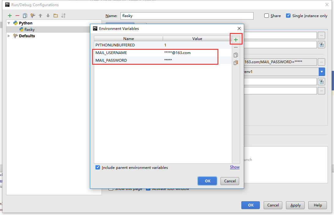 app.config['MAIL_USERNAME'] = os.environ.get('MAIL_USERNAME') #这里提示,不要将账户和密码写入代码里面,而是设置在环境变量里面读取