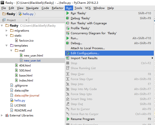 示例6-1 hello.py:配置Flask-Mail 使用Gmail