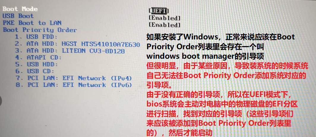 但如上图所示,虽然说不能在BIOS的Boot Priority Order里添加新引导项,但还是能够进入系统的,但启动速度肯定会有影响,而且BIOS系统在硬盘寻找EFI分区中的启动项是可能会出错,导致无法启动,这时候你可以尝试重复按F8,F8代表以上次正确的环境进入系统,很多时候你无法进入系统就是因为某些特殊的硬件环境发生了改变。所以过去的一年里,我一直使用Windows,偶尔需要linux环境通过虚拟机\云主机\git软件解决(git bash挺好的),而我的时间更多是花在编程上了。但问题还是一直没有被解决:无法往BIOS添加新条目,也就是无法添加开机引导!!!