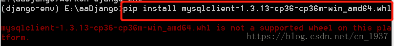 pip install mysqlclient‑1.3.13‑cp36‑cp36m‑win_amd64.whl