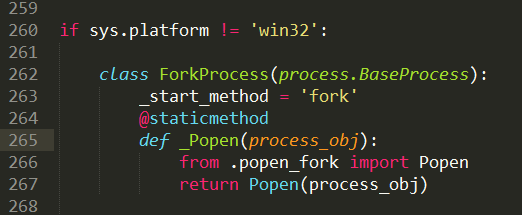multiprocessing根据平台不同会执行不同的代码:在类UNIX系统下由于操作系统本身支持fork()语句,win32系统由于本身不支持fork(),因此在两种系统下multiprocessing会运行不同的代码,如图1 UNIX平台、图2 win32平台(包含在context.py文件中,Process的定义也是在context.py文件中)。
