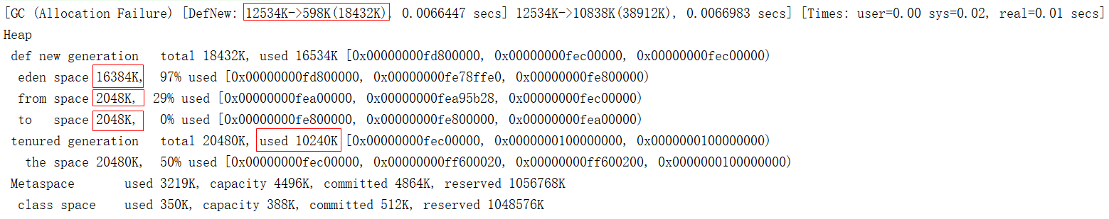 byte数组可以分配,但是,分配第四个的时候,空间不够,所以,需要进行一次Minor GC,GC之后,新生代从12534K变为598K。 - 前面在新生代分配的内存