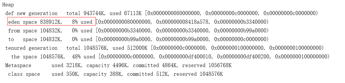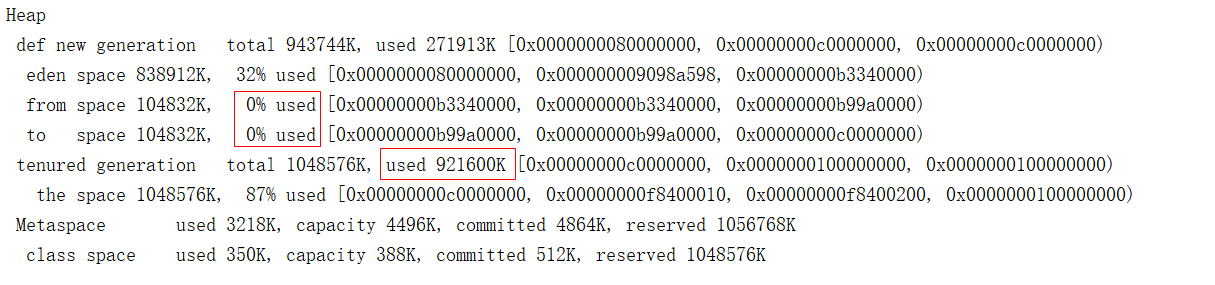 从结果可以看出,from和to都没有占用内存,而老年代则占用了很多内存。