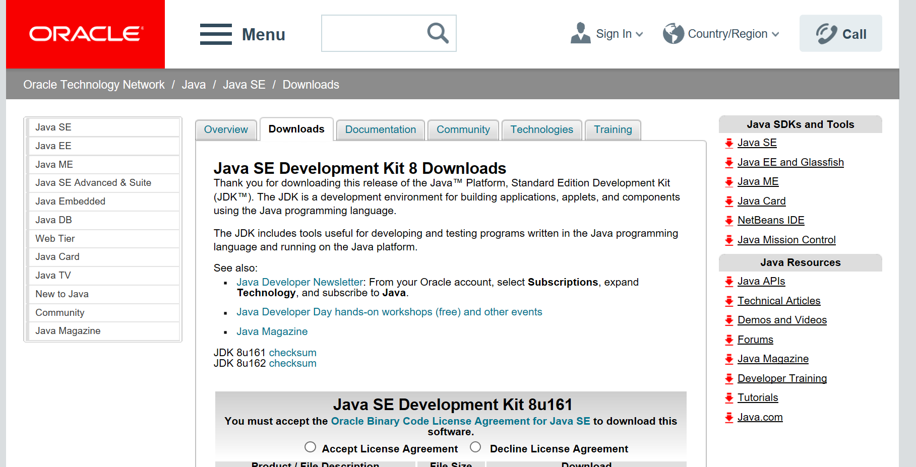 (1)下载并安装JDK(官方网址:http://www.oracle.com/technetwork/java/javase/downloads/jdk8-downloads-2133151.html)