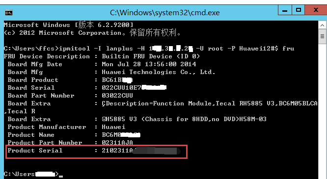 #os.system("ipmitool -I lanplus -H "+ ip + " -U root -P Huawei12#$ fru | find \"Product Serial\" >> C:\\Users\\ffcs\\Desktop\\sn.txt")