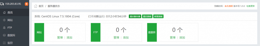 如果你要安装宝塔linux面板,你要准备好一个纯净版的linux操作系统,没有安装过其它环境带的Apache/Nginx/php/MySQL(已有环境不可安装)。支持的操作系统有CentOS,Ubuntu、Debian、Fedora。这里给大家演示的是centos7.5。