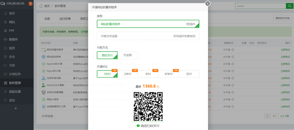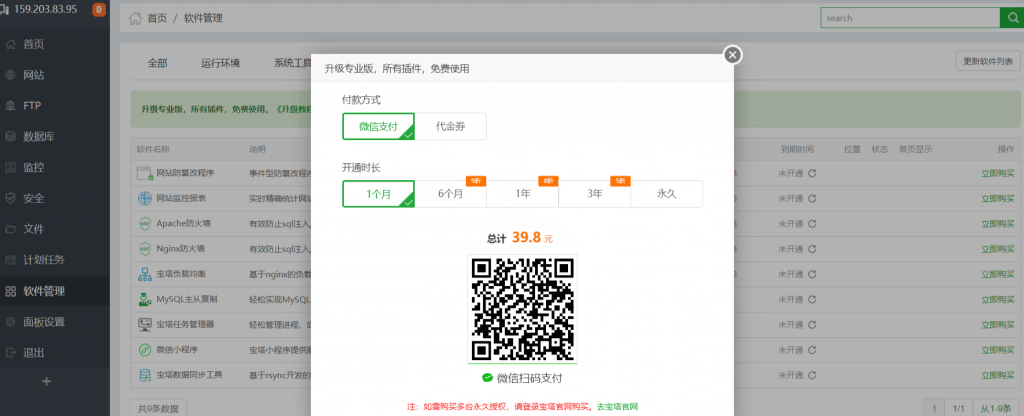 由于微信小程序是付费插件,你只有购买了或者开通专业版才能使用。微信小程序能够监控服务器,方便用户随时查看服务器状态。