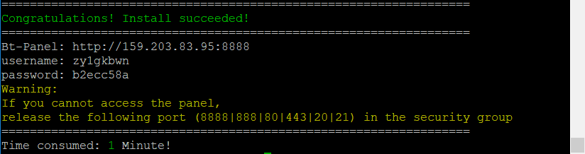 安装完成宝塔面板后,我们就可以在浏览器中访问了。复制Bt-panel中的URL到浏览器上访问。注意要打开服务器上的8888端口,关于如何打开服务器端口,你可以在本站中搜索答案。