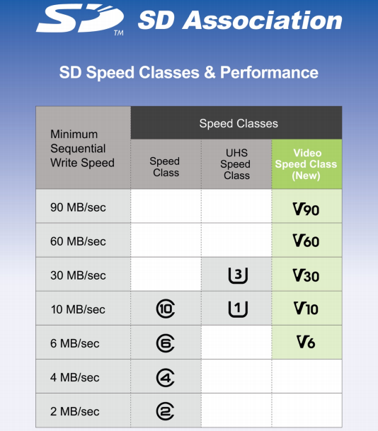 | UHS-II | --- | C4, C6, C10 U1, U3 V6, V10, V30, V60, V90 |