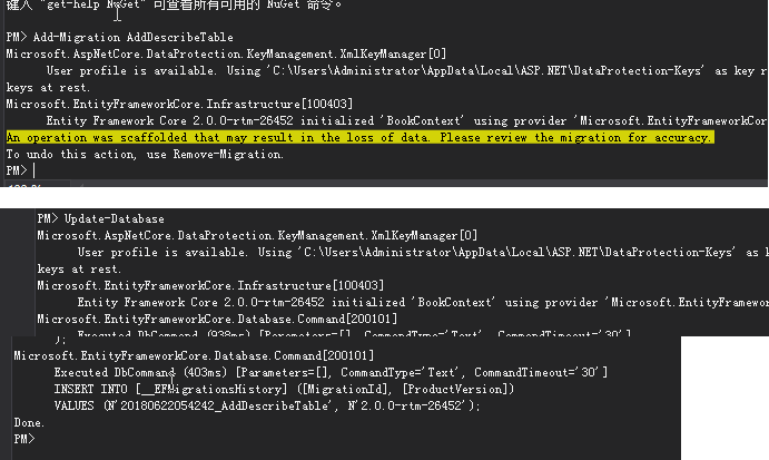 在 PMC 中执行以下命令。 这些命令将向数据库添加 Describe 表,执行结果发下图: