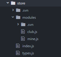 然后看下整个store的目录结构,modules文件夹用来将不同功能也面的状态分成模块,index.js文件夹是store的入口文件,types文件夹是定义常量mutation的文件夹