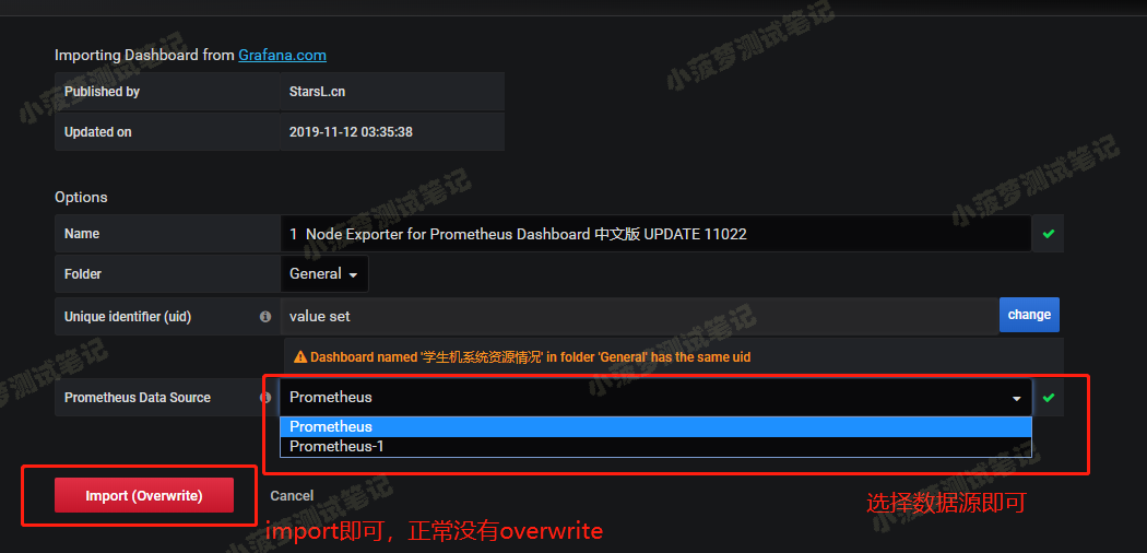 如果你读取失败,请务必检查自己的prometheus和Node_exporter是否有安装成功,通过访问9090和9100端口的网址来判断即可!