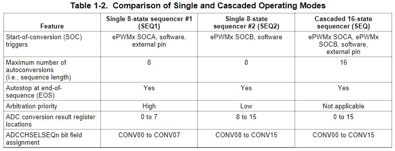 AdcRegs.ADCTRL1.bit.SEQ_CASC = 0x1; // Setup cascaded sequencer mode 設置級聯排序器模式