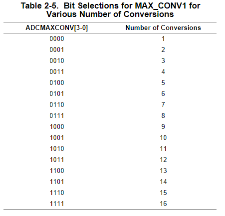 MAXCONV = 0 // 1 conversion; actually 2, because of SMODE_SEL = 1 1個轉換即可;實際上是2,因為SMODE_SEL = 1