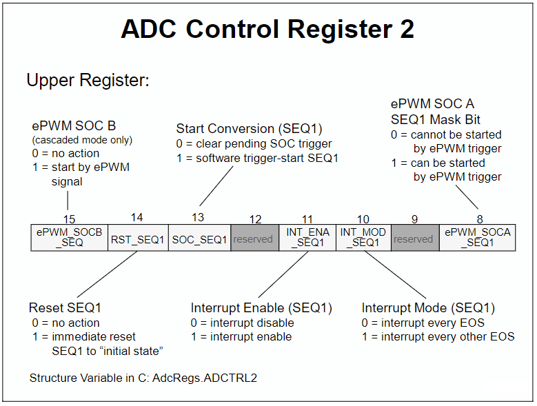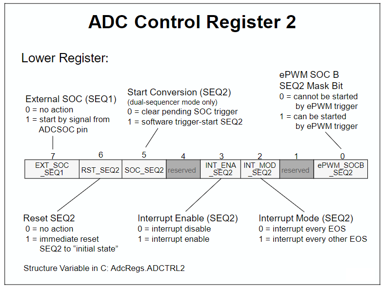 ADCTRL2的低字節與其上半部分類似:它控制序列發生器SEQ2。