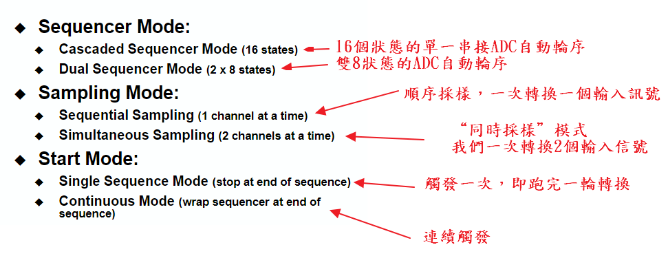 位0選擇採樣模式為順序或同時。回想一下,在同時模式下,兩個模擬輸入信號並行轉換 可參考EX1-1 or EX1-2。