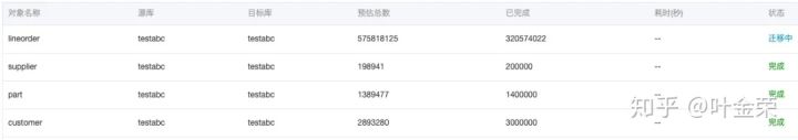 几个测试表的总数据量是604,637,902(6亿),创建完DTS同步任务后,经过22.5小时候,同步的数据量约为325,174,022条,完成率53.78%,折算下来每秒约3990条记录,这个速度如果是OLTP数据库也还算可以,但放在海量数据的OLAP场景下,可就有点慢了。