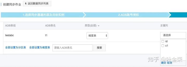 # 创建一个没有主键的测试表 [testabc]> CREATE TABLE t1 ( id int(11) DEFAULT NULL, c1 varchar(20) DEFAULT NULL ) ENGINE=InnoDB DEFAULT CHARSET=utf8; [testabc]> insert into t1 select 1,'c1'; [testabc]> insert into t1 select 2,'c2'; [testabc]> insert into t1 select 2,'c2'; -- 重复数据 [testabc]> select * from t1; +------+------+ | id | c1 | +------+------+ | 1 | c1 | | 2 | c2 | | 2 | c2 | -- 重复数据 +------+------+配置DTS同步任务,选择id列作为主键。