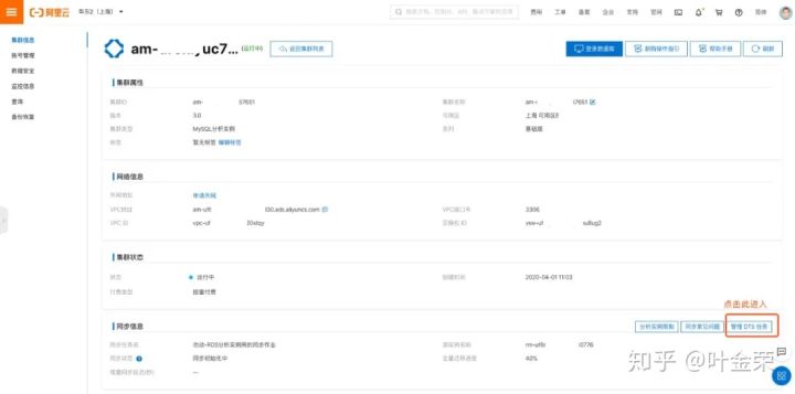 在ADB的集群信息,点"管理DTS任务"链接,新打开页面异常。