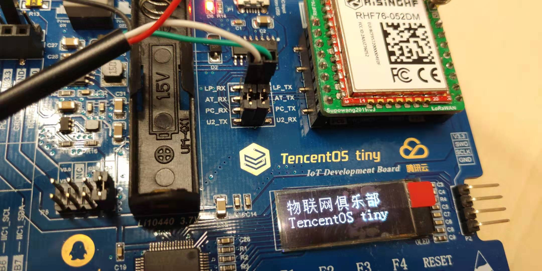 经过分析,发现 TencentOS tiny 定制开发板上具有相关的串口跳线,可以很方便的对其中任何一方的数据进行分析。