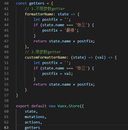 例如,我们使用store中name的时候,需要做一个判断:如果是张三,返回“张三最棒”,其它的原样返回,我们可以这样做