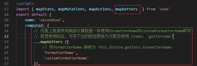 页面上将 this.$store.state.name 改为 formatterName即可。但是,如果我们这个操作不只这一个组件使用,那我们就需要在每一个组件中去定义这样一个计算属性,且不说代码冗余的问题,后期如果要更新后缀,想想吧,挨着一个一个组件的去巴拉。。。