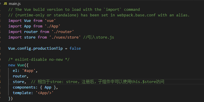 2.新建store.js ( 名字随便起 ),引入vue和vuex,结构如下