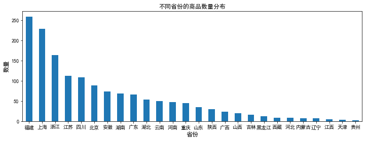 plt.title('不同省份的商品数量分布',fontsize=12)