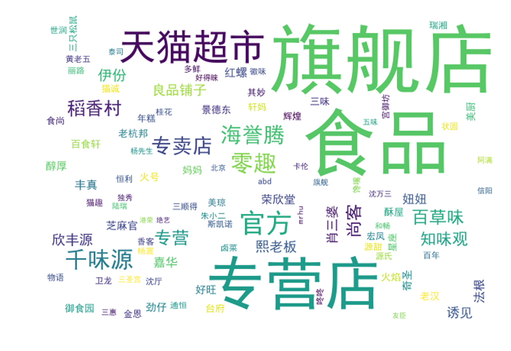 1、多数店名带有“旗舰店”、“食品”、“专营”等字眼;