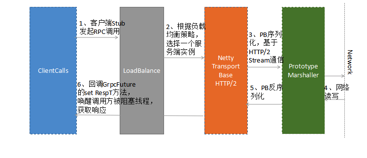 当我们在微服务中使用gRPC时,整个服务调用过程如下所示(图片来自网络)