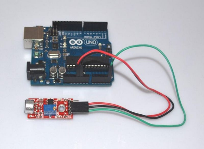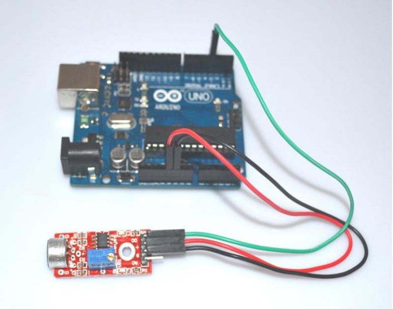 3.小板数字量输出OUT可以与Arduino uno直接相连,通过单片机来检测高低电平,由此来检测环境的声音;