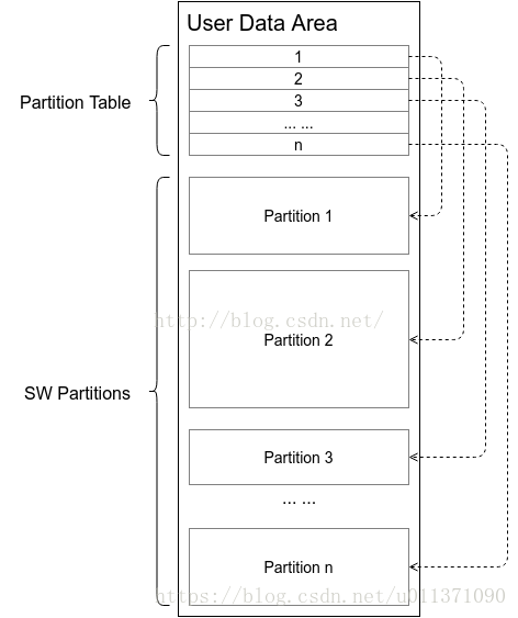 为了更合理的管理数据,满足不同的应用需求,UDA 在实际产品中,会进行软件再分区。目前主流的软件分区技术有 MBR(Master Boot Record)和 GPT(GUID Partition Table)两种。这两种分区技术的基本原理类似,如下图所示