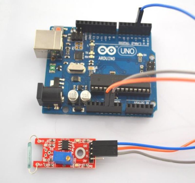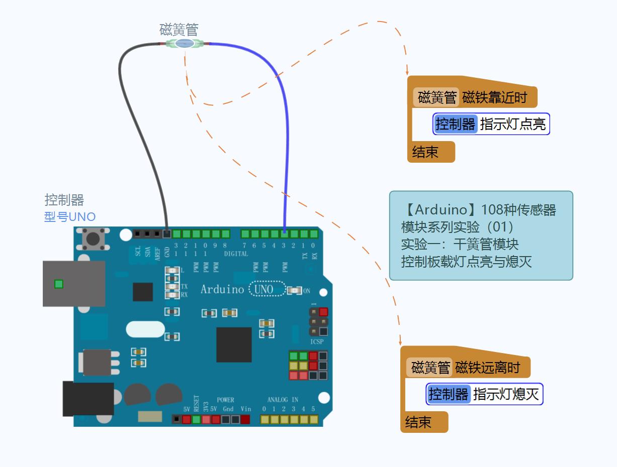 2.模块DO输出端与Arduino UNO数字口直接相连,可以检测干簧管的触发状态;
