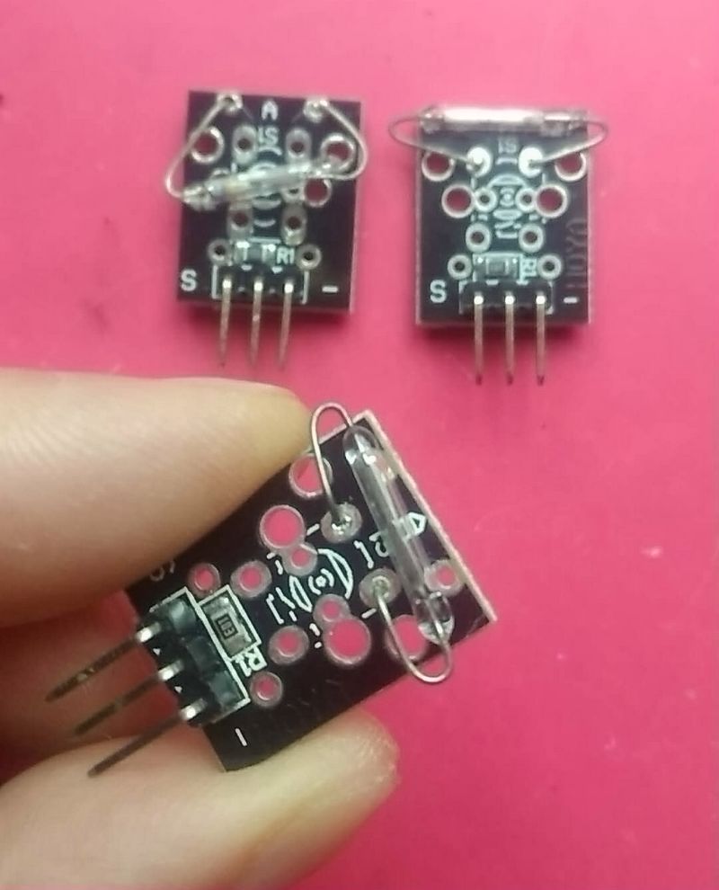 1.干簧管模块需要和磁铁配合使用,在感应到有一定的磁力的时候,会呈导通状态,模块输出低电平,无磁力时,呈断开状态,输出高电平,干簧管与磁铁的感应距离在1.5cm之内超出不灵敏或会无触发现象;