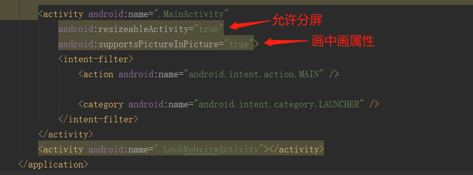 我们知道Activity是默认支持分屏模式的,但我们也需要声明Activity是允许分屏的,再增加支持画中画模式: