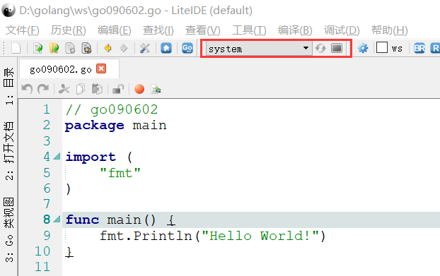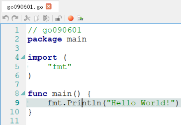 建立一个 名称为go090601的 Go Source File:“Hello World!”程序。
