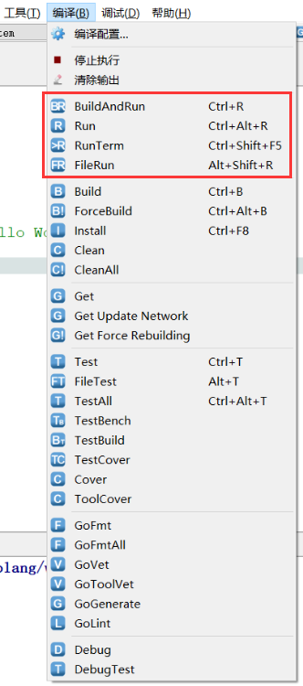 LiteIDE提供了很多Go程序的编译、运行、测试、调试命令,还需搞清楚: