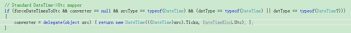 为什么实体中DateTime类型的DateTime.Kind会是UTC,经过一番查找,发现是Petapoco框架中有个标准时间映射器