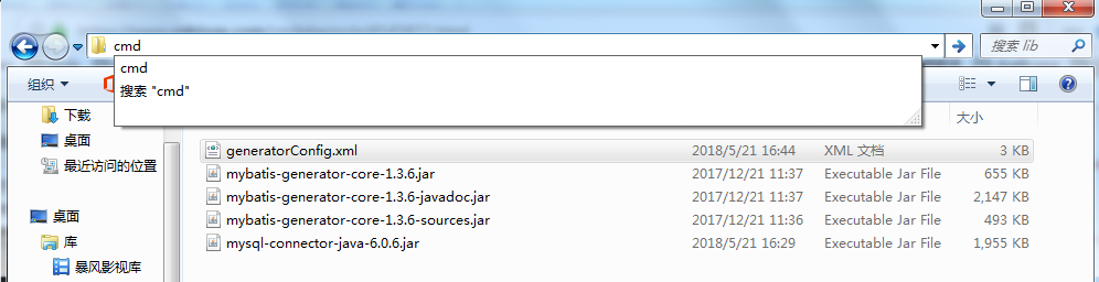 然后在目录\mybatis-generator-core-1.3.6\lib地址栏中输入cmd,回车。