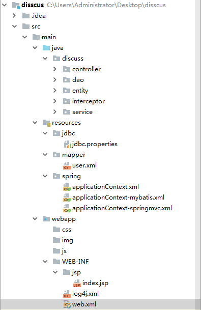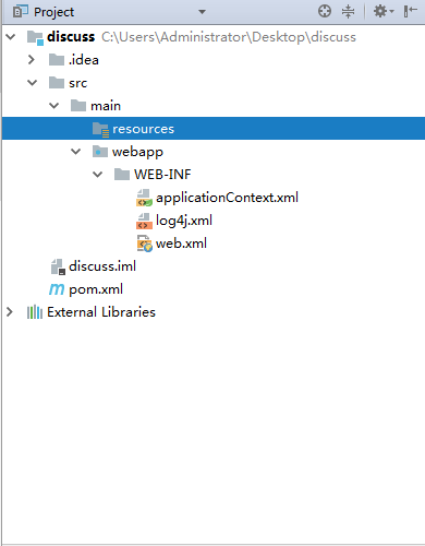 我一般使用的目录结构如图,文件详细内容和配置代码后面会给出。创建src/main下面的java文件后,选中java,右键mark directory as ,选择java root。