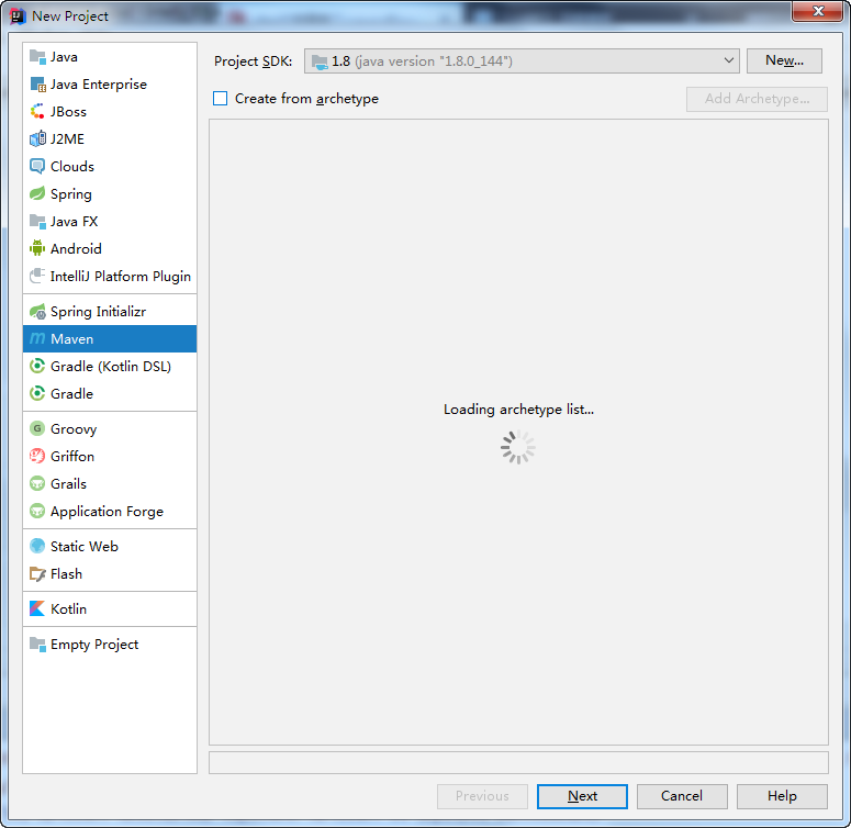 这里可能会遇到archetype一直加载的问题。原因:idea一直读自己的配置里缓存导致的。