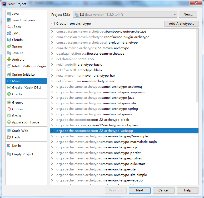 解决之后,勾选crete from archetype,并选择如图所示的archetype: