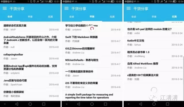 号称App最多的网站干货集中营(Gank.io)最后也推荐两个。首先来一个的是效果和开发者头条有点类似的哈~同时兼容双平台。不过也是very 因垂思挺。