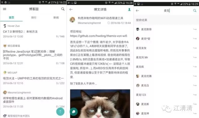 采用React Native开发的cnblog博客客户端,当时只适配Android版本。不过基本功能已经做的挺完善的效果也还不错。已经涵盖博客,排行列表,详情,评论,搜索等功能。