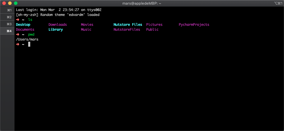 接下来就是美化zsh(装X之路) 本人主题都是用zsh自带的,而且选了随机,y每次打开新的tab,都会随机一个新的主题,觉得这样还是蛮好的,挺有新意