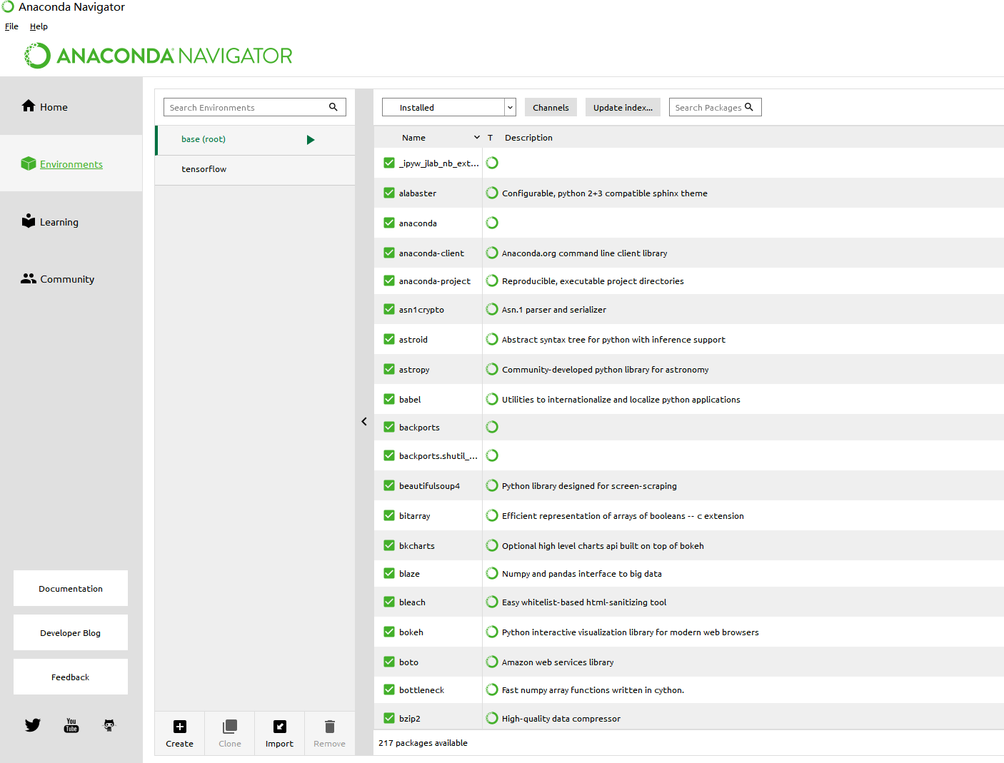 安装好后打开Anaconda,点击左上角的第二个选项Environments,如图所示
