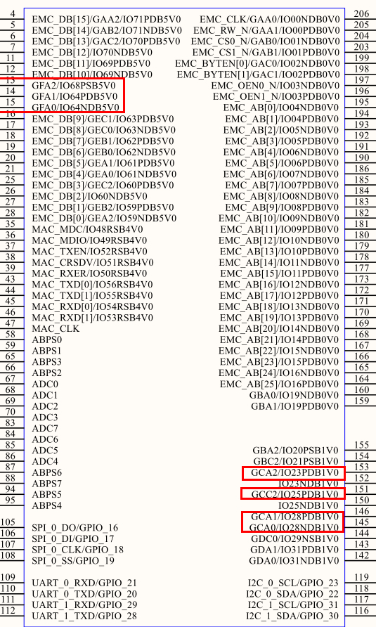 即只有管脚名称为GFA0/1/2,GFB0/1/2,GFC0/1/2,GCA0/1/2,GCB0/1/2,GCC0/1/2(共18个)才支持全局网络分配,而且,如果使用了GFA0引脚作为全局输入引脚,那么GFA1和GFA2都不能再作为全局网络了,其他GFC等同理,这一点在设计电路时要特别注意。