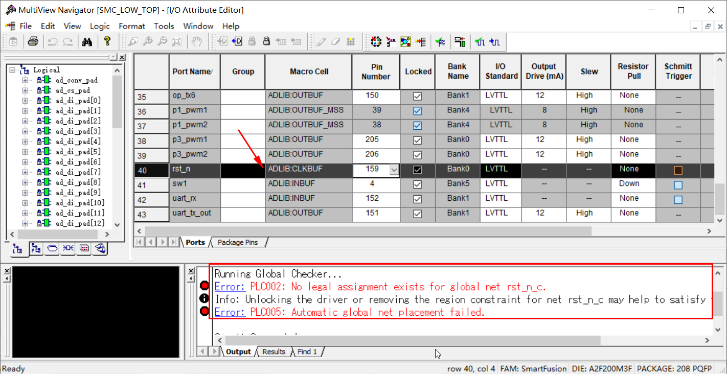 Error:PLC002:No legal assignment exists for global net rst.n_c.