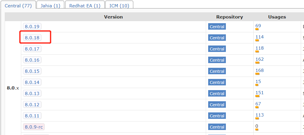 点击图中的 ver.8.0.15,进行切换版本,但是并没有对应的8.0.18的版本。