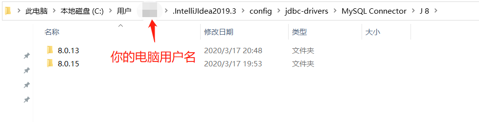 在IDEA的配置目录下,默认在 C:\Users\电脑用户名\.IntelliJIdea2019.3\config\jdbc-drivers\MySQL Connector\J 8 ,创建一个名为 8.0.18的文件夹,将 jar包复制进去。